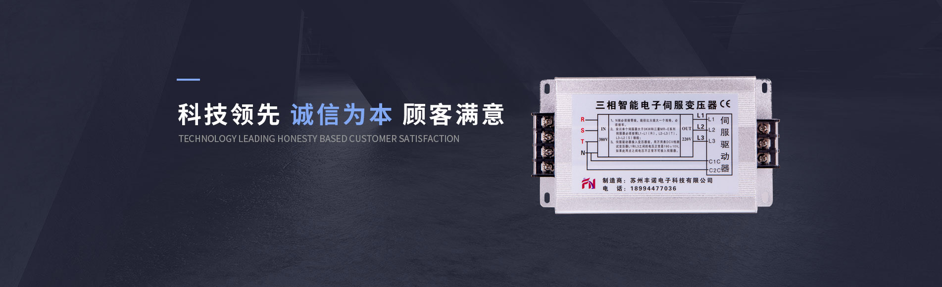 蘇州豐諾電子科技有限公司是國內專業從事變壓器研發、生產、銷售和服務為一體的高科技型企業。目前公司主要生產產品有:三相智能電子伺服變壓器、三相干式變壓器、單相隔離變壓器、穩壓器、調壓器、開關電源等產品...